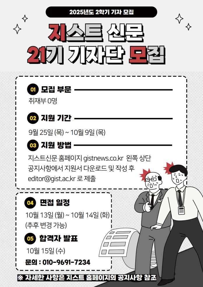 지스트신문에서 21기 취재부 신입기자를 모집합니다